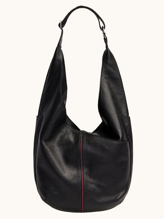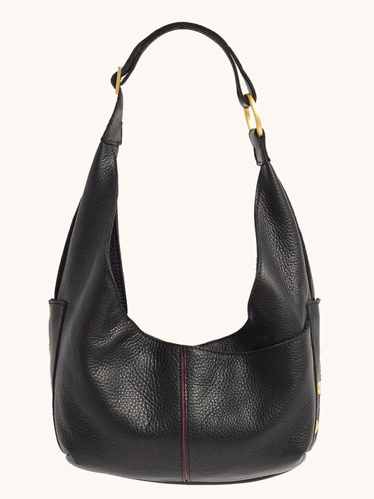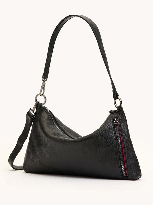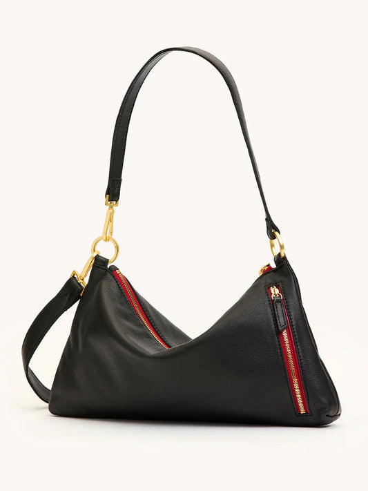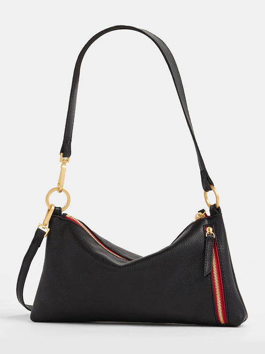Hammitt Los Angeles Kyle Shoulder Bag in Black/Brushed Gold & Red Zip