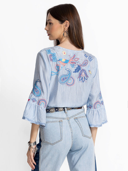 Johnny Was Ruffle Sleeve Blouse in Barine Stripe Bar