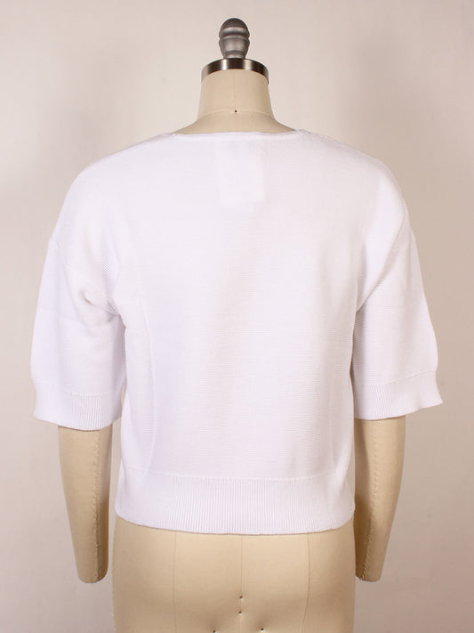 Akris Punto Layered Short-Sleeve Knit Sweater in Black/Cream