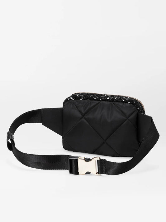 MZ Wallace Madison Quilted Belt Bag in Black Sequin