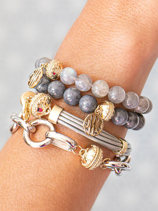Tat2 Designs Labradorite Mota Coin Bangle in Vintage Silver & GoldRegular price $315.00 USDRegular priceUnit price per-